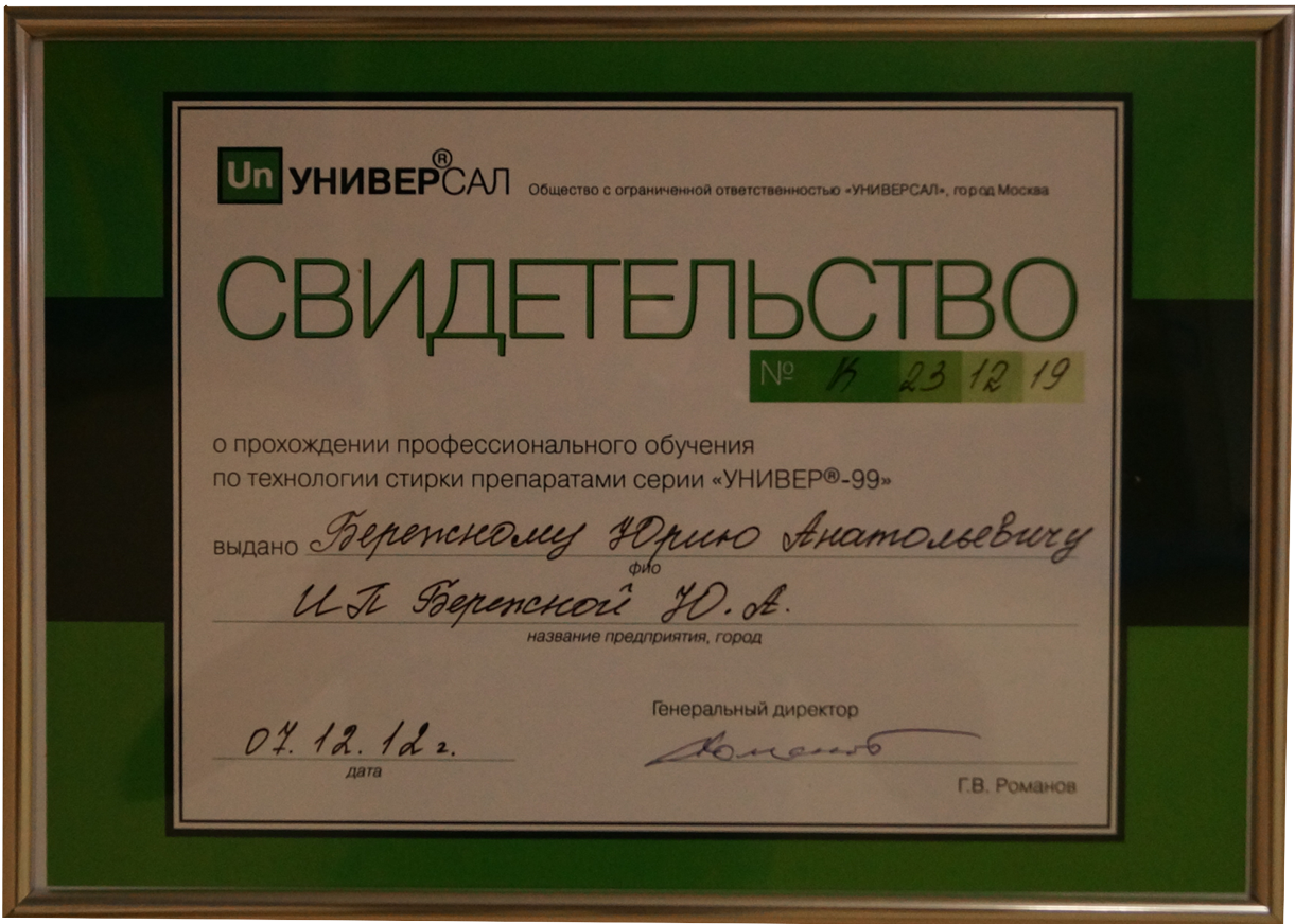современным европейским оборудованием (SUPREMA, VIET, IPSO, PONY, Electrolux), использование химических препаратов ведущих